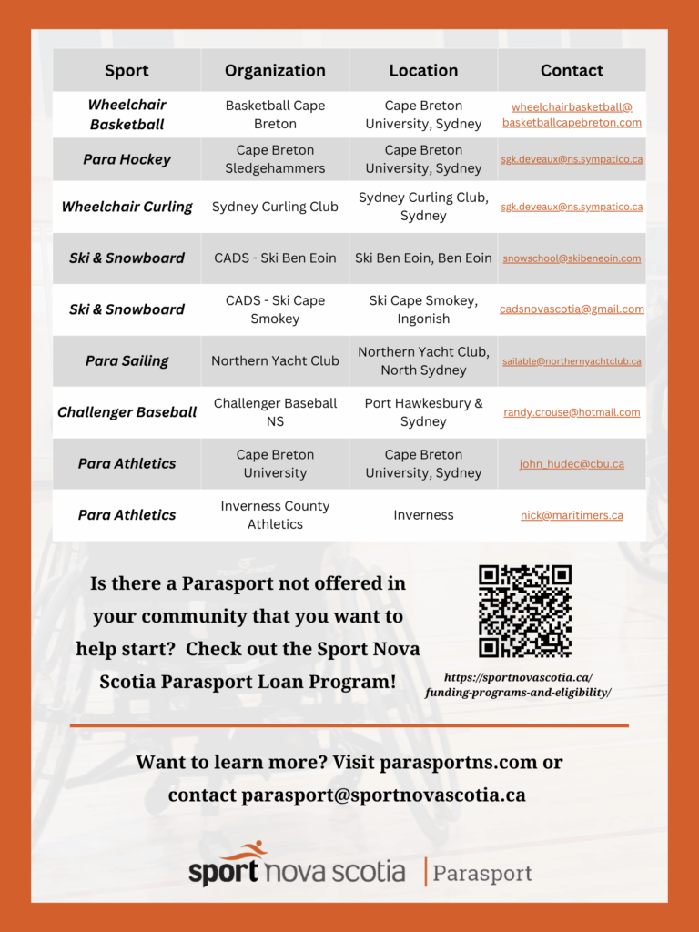 Find a printable handout of the Parasport programs available in Cape Breton below!