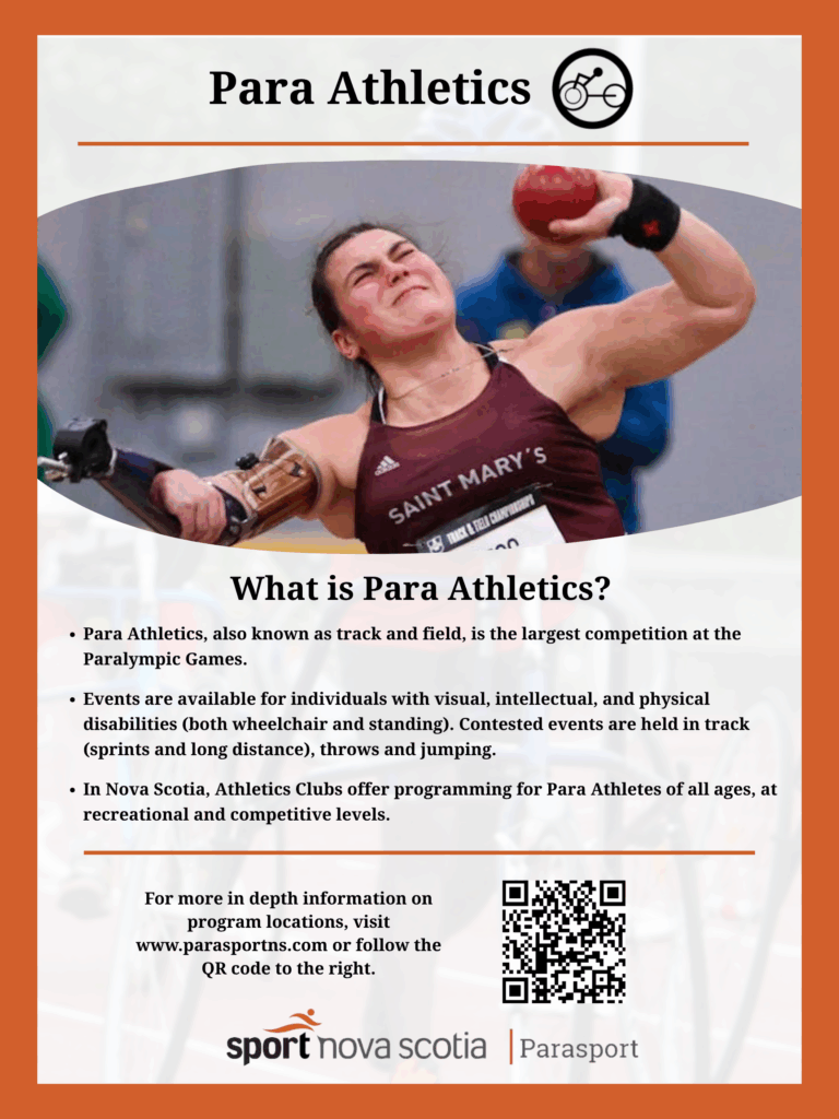 Para Athletics in Nova Scotia is governed by Athletics Nova Scotia.
